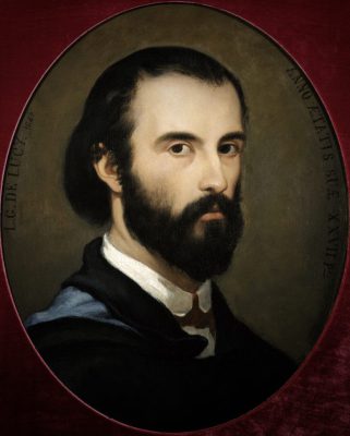 In 1851, he decorated a vase, later offered by Emperor Napoleon III of France to Prince Albert, now part of the Royal Collection at St. James’s Palace, London. He exhibited Bacchus and Love, Drunk, a Greek Interior and Souvenir d’Italie, in 1851; Paestum (1852); and An Idyll (1853).