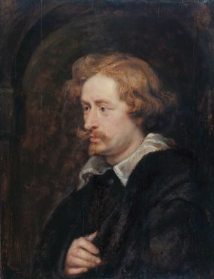 Antoon van Dyck (his Flemish name) was born to prosperous parents in Antwerp. He was baptised on 23 March 1599 (as Anthonio). His talent was evident very early, and he was studying painting with Hendrick van Balen by 1609, and became an independent painter around 1615, setting up a workshop with his even younger friend Jan Brueghel the Younger. By the age of fifteen he was already a highly accomplished artist, as his Self-portrait, 1613–14, shows. He was admitted to the Antwerp painters’ Guild of Saint Luke as a free master by February 1618. Within a few years he was to be the chief assistant to the dominant master of Antwerp, and the whole of Northern Europe, Peter Paul Rubens, who made much use of sub-contracted artists as well as his own large workshop. His influence on the young artist was immense; Rubens referred to the nineteen-year-old van Dyck as “the best of my pupils”.