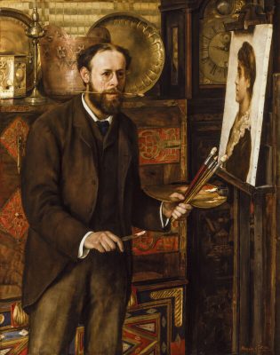 Sixteen of John Collier’s paintings are now in the collections of the National Portrait Gallery in London, and two are in the Tate Gallery. Four of the National Portrait Gallery paintings were in December 1997 on display: John Burns, Sir William Huggins, Thomas Huxley (the artist’s father in law) and Charles Darwin (copies of the last two are also prominently displayed at the top of the staircase at the Athenaeum Club in London).